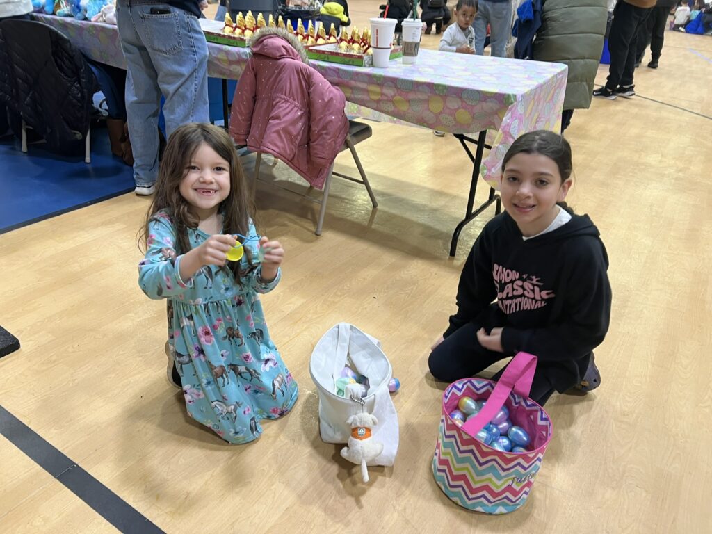 The Kiwanis Club volunteers at the local Egg Hunt, sponsored by the West Caldwell Recreation Department, handing out prizes to the children.